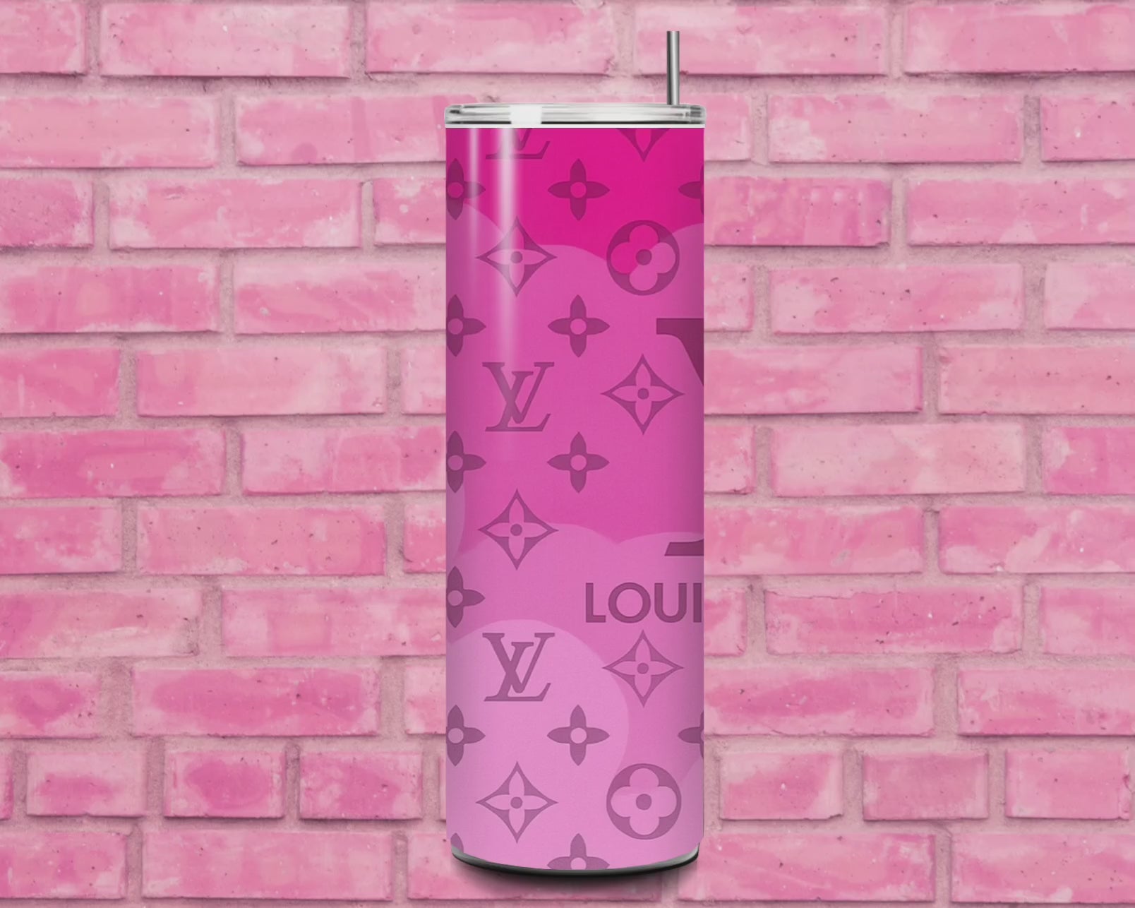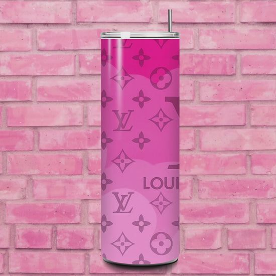 Sip in style with this luxury-inspired pink tumbler, featuring a bold ombré pink design and elegant designer-style monogram pattern. Crafted from high-quality stainless steel, this tumbler keeps your beverages hot or cold for hours — perfect for coffee, smoothies, or water on the go.